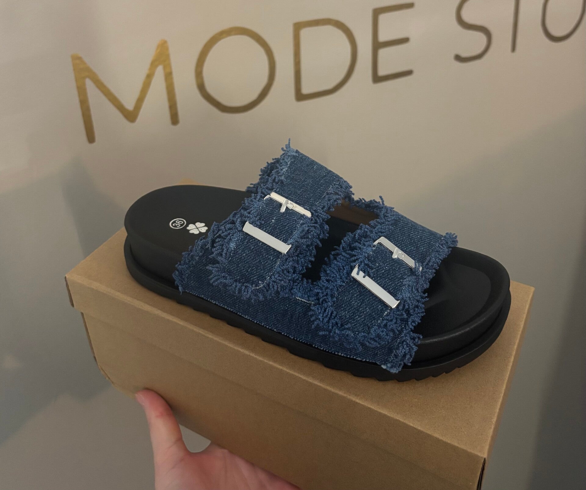 Spijker stof slippers blauw